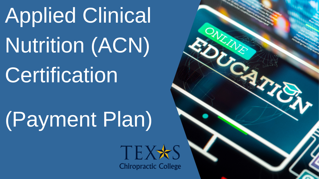 Fee includes directed independent study materials, 40 hours of CEUs (DC approved in 30 states), 20+ hours of online elective programs, 3 individual coaching sessions, useful resources, study guide, monthly online webinars/recordings, private ACN community, online testing modules, access to online transcript, and submission to Texas Chiropractic College.